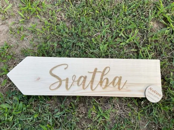 Směrovka pravá takže na druhou stranu než je na fotce. Velikost dřevěné směrovky je 45x11 cm. Jedná se o dřevěnou směrovku ( nejedná se o překližku). Text je do dřeva vypálen. Do směrovky je možné vytvořit různé nápisy, text mi prosím napište do poznámky. Základní napisy jsou svatba, fotokoutek, dětský koutek, dámský koutek a pánský koutek.